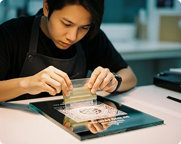 For brands that value sophistication and detail, Crystal Film Printing offers a sleek way to showcase your logo or design on glass and crystal items. At IG Premium, we use specialised digital printing methods that apply your design onto a transparent film before it’s carefully bonded to the crystal surface with a clear adhesive layer.